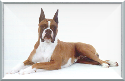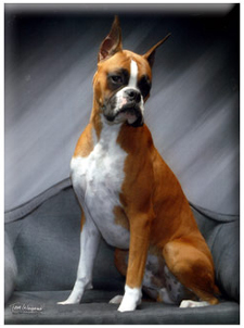 ![]() East Bay Boxer Club, October 2002, 1st Place for Veteran Dog at 6 yrs, 3 months. Handled by Danielle Slusher. |